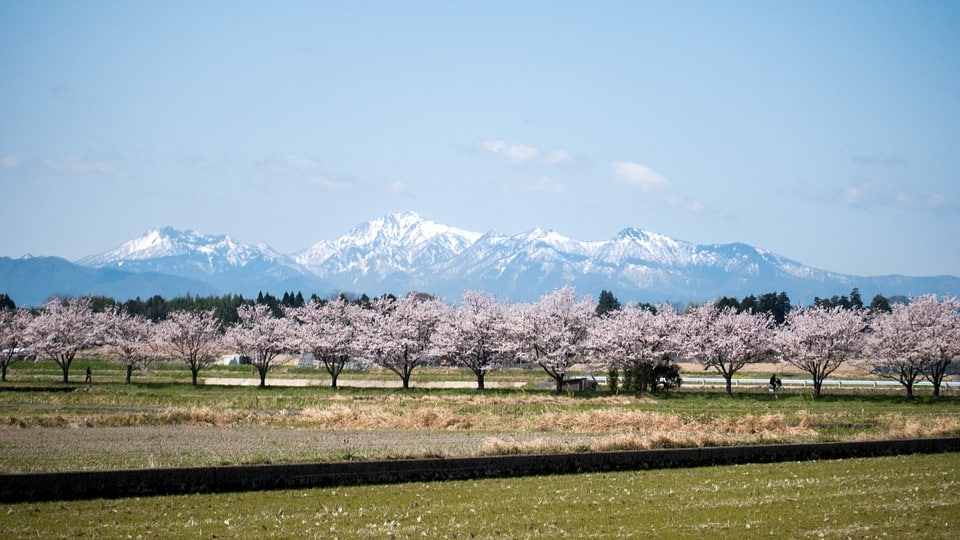 Die herrliche Gegend von Tohoku ist der Hanamiama Park. Er befindet sich auf Vordächern, die eine ländliche Bauerngemeinde in der Region Fukushima umgeben. Der Park wurde von lokalen Unternehmern gegründet – Bauern, die Sakura-Zierpflanzen anbauten. Im Park können Sie verschiedene Kirschblütenarten und viele andere blühende Bäume mit herrlichem Blick auf die Azuma-Berge beobachten.